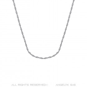Cadena de malla Singapur en acero inoxidable con acabado plateado, disponible en 4 longitudes diferentes