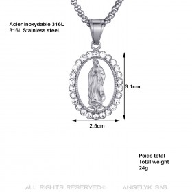 Colgante Virgen María Acero Strass Collar Plata Cadena