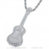 Colgante de guitarra con diamantes, Creación exclusiva, Acero inoxidable, Cadena trenzada
