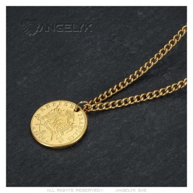 Colgante Napoleón III 20 Francos Acero Inoxidable Oro