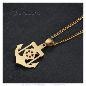 Collar Ancla Marina Cruz Jesús Acero Inoxidable Oro