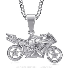Colgante moto Acero inoxidable Cadena de plata 60cm