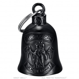 Timbre de moto 'St. Christoph Sichere Fahrt' en acero inoxidable titanio negro de la marca francesa Mocy Bell®.