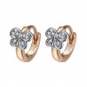 Estos pequeños pendientes están dorados con oro fino (oro rosa de 18 quilates) y están engastados con circonio formando una pequeña mariposa de plata.