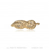 Está hecho de latón y es de oro. Mide 15 mm de largo y pesa de 2 gr..