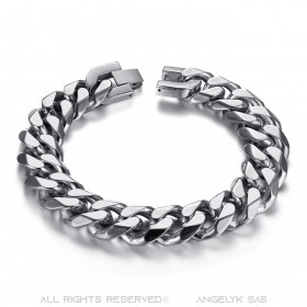 Aquí está nuestra cadena de bordillo de 13 mm para hombre en acero inoxidable 316L real.Esta pulsera resistirá el tiempo y nunca cambiará de color, mantenla las 24 horas del día, ducha, piscina, cloro, ¡no le teme a nada!