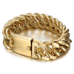 Gourmette homme Bracelet gros maillon 15mm Acier Inoxydable finition Or 21.5cmVous devez être connecté à votre compte client- 26,90 €