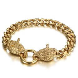 Bracelet viking Loup Fenrir Gourmette Homme Double tête Acier inoxydable OrVous devez être connecté à votre compte client- 39,90 €