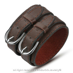 Bracelet Homme Cuir Véritable Noir ou Marron Acier Inoxydable Multi LanièresVous devez être connecté à votre compte client- 16,90 €