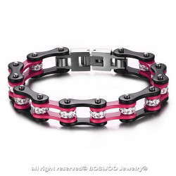 Bracelet Femme Homme Acier Inox Argenté Noir Rose Strass Chaîne Moto Vélo BikerVous devez être connecté à votre compte client- 29,90 €