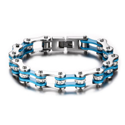 Bracelet Chaine de Moto Homme Femme Acier Strass Bleu Blanc Biker Foot MarseilleVous devez être connecté à votre compte client- 35,90 €