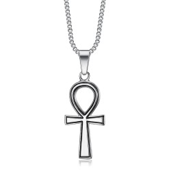 Pendentif croix de vie Ankh 40mm Femme collier chaîne 50cm Acier inoxydable ArgentVous devez être connecté à votre compte client- 16,90 €