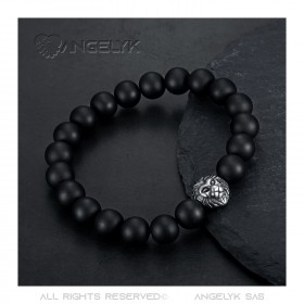 Bracelet boule 10mm Onyx noir Tête de lion acier