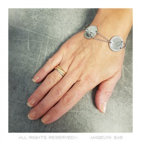 Bracelet louis d'or pour femme monté avec 4 pièces Napoléon, acier argenté