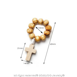 Chaque bague est composée de 10 petites billes de bois (diamètre 8mm et d'une petite croix mesurant 21 x 14mm.