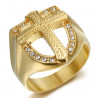 Bague croix Chevalière blason bouclier Acier Or Diamant