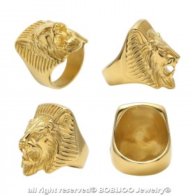 Chevalière Bague Homme Tête de Lion Pharaon Acier Or