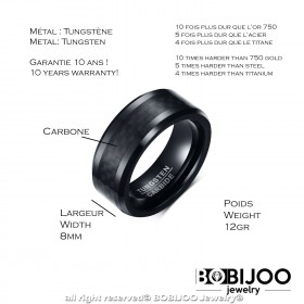 Le carbure de tungstène est 10 fois plus dur que l'or 750/1000 (18 carats) et 4 fois plus dur que le titane.