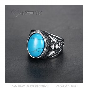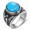 Bague chevalière biker en acier inoxydable de qualité surmontée d'une turquoise griffée de forme ovale.