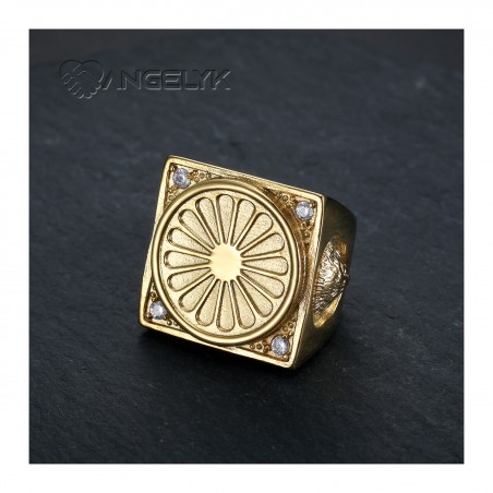 Bague gitan acier, or et diamant représentant la roue du drapeau voyageur