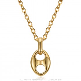 Pendentif grain de café 9mm Acier inoxydable Or Chaîne