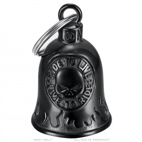 Clochette moto Mocy Bell Skull Ride to Live Acier inoxydable Noir