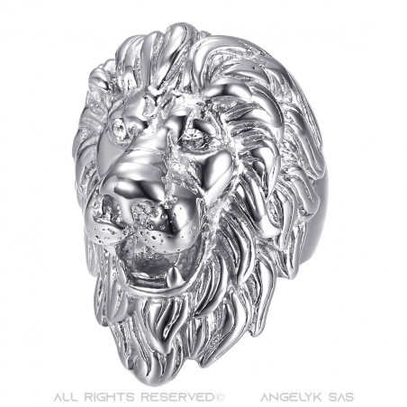 Création exclusive Angelyk SAS pour cette bague tête de lion, gueule ouverte, façonnée dans la masse de l'acier brut.