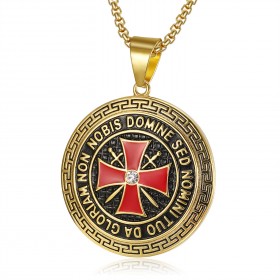 Collana ciondolo Uomo Templari Stemma Scudo Rosso Croce patente d'oro in Acciaio, Argento Ordine del TempioDevi essere autenticato- 26,90 €