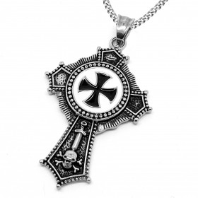 Collana con pendente a Biker Triker Croce Templare Pattee Cranio Testa di Morte Acciaio 316L Fiammeggiante CatenaDevi essere autenticato- 28,90 €
