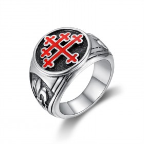 Anello Anello Uomo Templari Monarchici Cattolica Croce Rossa Strass AcciaioDevi essere autenticato- 19,90 €