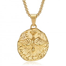 Ciondolo Medaglia Spirito Santo Colomba Veni Sancte Spiritus In Acciaio Placcato Oro + CatenaDevi essere autenticato- 19,90 €