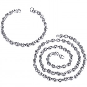 Set collana catena + bracciale chicco di caffè acciaio inossidabile 316L argento 4 diverse dimensioniDevi essere autenticato- 34,90 €