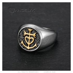 Anello con sigillo a croce della Camargue in acciaio inossidabile - Oro e nero