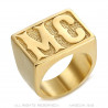 Anello Biker MC Signet Ring Uomo Rettangolo Acciaio Oro
