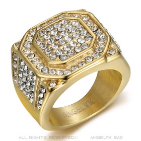 Anello da uomo con diamanti in acciaio inossidabile dorato con oro fino.