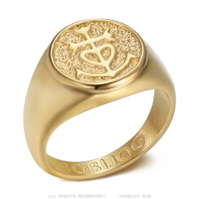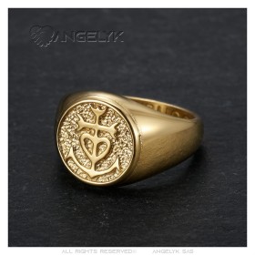 Anello con sigillo a croce della Camargue in acciaio inossidabile - placcato oro