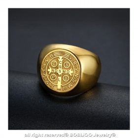 Anello Anello Uomo Con Medaglia Di San Benedetto In Oro