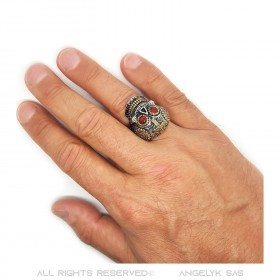 Anello teschio messicano Acciaio Oro Occhi rossi