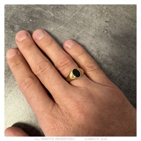 Anello con sigillo cabochon ovale in onice 9*6mm Acciaio inossidabile dorato