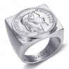 Vi presentiamo questo sublime anello Napoleone quadrato e sagomato in un unico blocco in acciaio inossidabile di alta qualità.Tutti i dettagli della moneta da 20 Franchi o Napoleone sono stati accuratamente riprodotti nella massa dell'acciaio.
