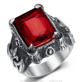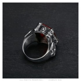 • Chevalière Templier Royaliste Fleur de Lys Biker Acciaio Rosso Rubino IM#25303