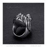 Creazione esclusiva Angelyk SAS per questo anello testa di leone, bocca aperta, sagomato nella massa di acciaio grezzo.