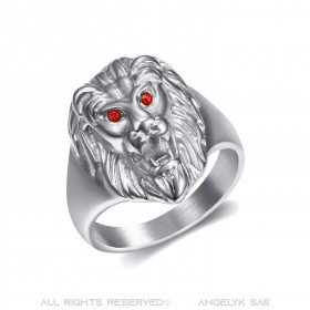 Anello testa di leone Modello piccolo Bambino Steel Red Eyes