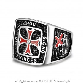 Anello Acciaio Cavaliere Templare IN HOC SIGNO VINCES