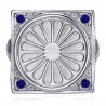 Anello zingaro in acciaio, argento e zaffiro che rappresenta la ruota della bandiera dei viaggiatori