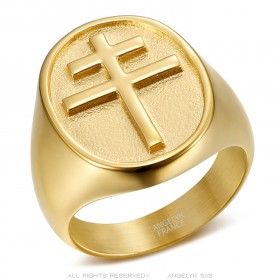 Anello Croce di Lorena da uomo Acciaio inossidabile Oro