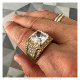 Anello con diamante da uomo Acciaio inossidabile Zirconio oro