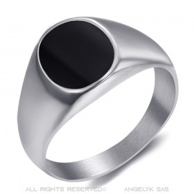 Anello cabochon piccolo smaltato nero. Acciaio inossidabile Argento