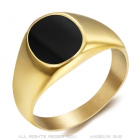 Anello cabochon piccolo smaltato nero Acciaio inossidabile Oro