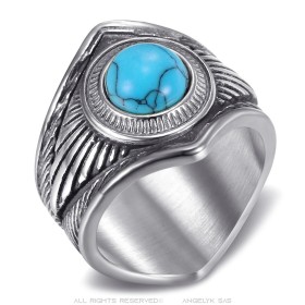 Anello biker indiano Chaman in turchese, argento e acciaio inossidabile